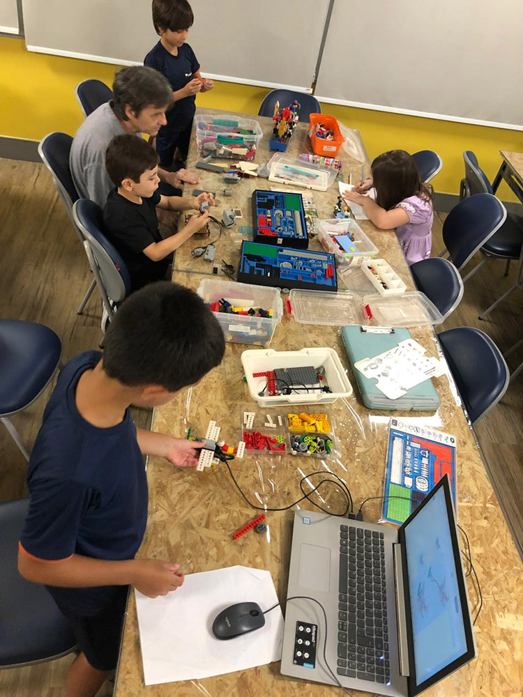 Aulas de desenho artístico, desenho animado, criação de histórias, modelagem 3D, desenvolvimento de games e robótica com kits educacionais LEGO, promovendo criatividade e compreensão de diversos conceitos.